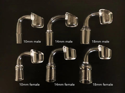 Most of these bangers are available in a variety of sizes too, so it is important to know what your bong or rig can accept. The majority of glassware today is built on 14mm joints, either male or female, which means that 14mm bangers will be the most common. However, smaller 10mm bangers exist, and are especially common on ‘mini rigs’ or smaller portable water pipes. 18mm bangers also exist, often letting users do dabs in their larger bongs. It should be noted that while most of the time your bong or dab rig will have a female joint, and the banger will have a male joint to connect with it, this is not the only configuration you will encounter. It is also important to identify if you need a banger that is designed for 90º of 45º joints, so that the banger sits at the proper angle on your pipe.