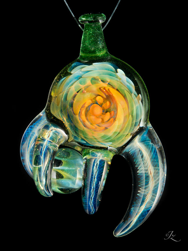 We recently received a new shipment from Doshworld, and this is a good opportunity to tell you a little about Dosher(sometimes styled as just Dosh). Since 1997 Dosher has played a significant role in the evolution of the glass pipe movement. Performing and competing in many events including the DFO, Pipe Classic and Master Flame Off. Dosher has published art in both Smoked Vol.I and Vol.II, and was featured in many publications, including Hot Breath, The Flow, High Times. He was mentioned on the Howard Stern show, and appeared in the film ‘Degenerate Art.’  Dosh has also played a quintessential role in the impact of the American Glass Pipe movement in Europe with his involvement in the “European Functional Flame Off”.