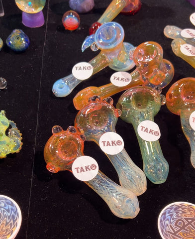 Glass Vegas expo was truly an inspiration for Tako. From the creative new pieces he saw to the friendly faces of glass artists he’s met a million times or was just meeting for the first time, Tako came home feeling refreshed and ready to start blowing more exciting new glass pieces for you! There was an artist at the expo that even came up to Tako expressing how he purchased a Tako original glass pipe from him about 20 years ago in Cleveland. That artist was so stoked to get to meet Tako in person and buy a new pipe! It means the world to Tako and the whole team to meet artists and customers who are amped about Tako’s glass art. That’s what fuels Tako’s energy, keeping him motivated and inspired to keep creating glass pieces! Don’t forget to check our website for new pieces dropping soon, www.takoglass.com/collections/new-arrivals!