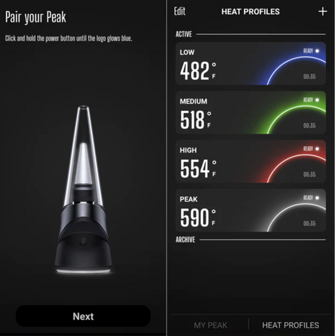 Ready Mode – allows you to select a heat setting to auto-intiate when removed from the Peak Pro Dock. Puffco has a wireless dock to charge your unit. No more forgetting to plug it in at the end of a sesh.