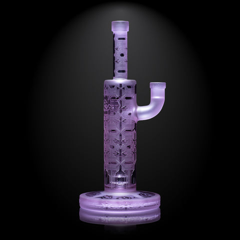 The Skull Emperor beaker bong tells the story of Horan an emperor who has nothing left to wager but death itself. This bong comes in the classic clear coloring or in the darker smoke color way with skulls piling up at the base and the dead emperor rising from the center of the bong. If you dig skulls you’re going to love this beauty! Meanwhile the Dark Matter Generator dab rig offered in an amazing purple, depicts an alien species from another galaxy that sought to advance technology through dark matter. With deep textured grooves and incredible details swirling around the entire piece, you will not be disappointed adding this piece to your collection!