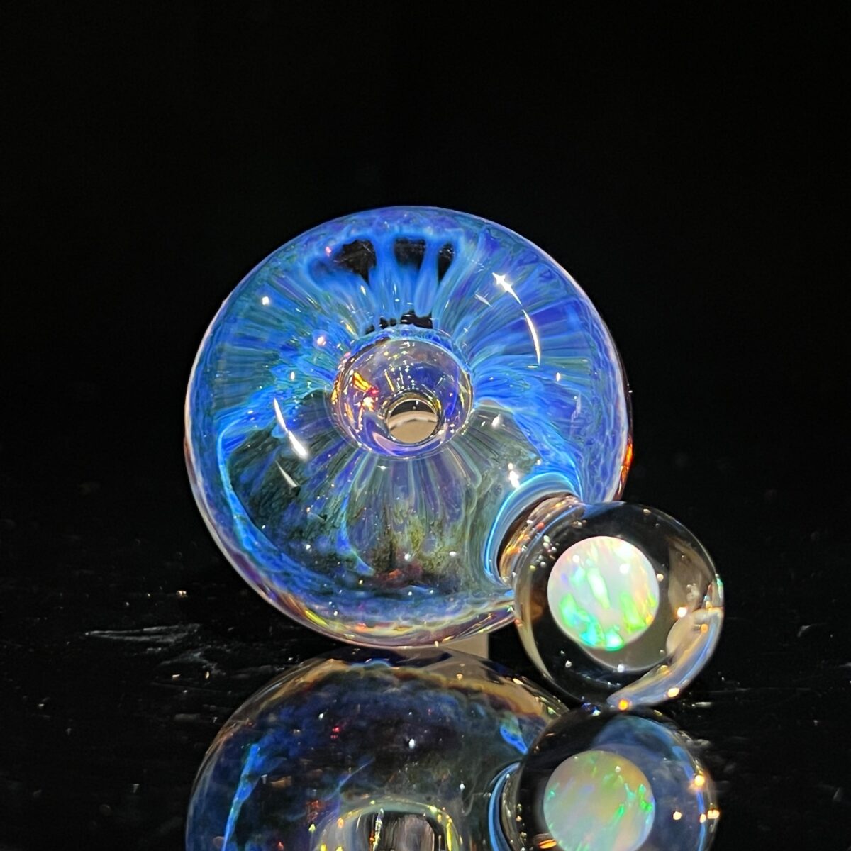Rad purple pull slide in the nebula purples. Awesome opal sphere shines hella bright and vivid. It’s super magnified with the marble it’s enclosed in, really sparking the colors that shine.