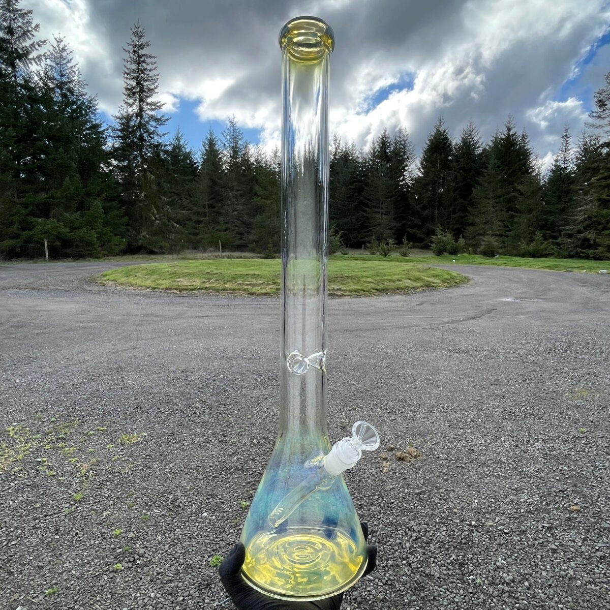 22″ Fume Beaker Bong will transport — This fumed piece is a color changer so the more you use it the more the colors will shift and become vibrant!