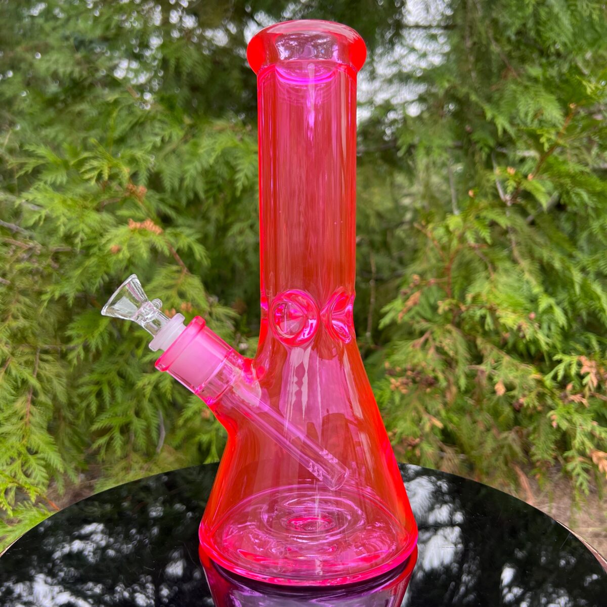 Bright Pink 10″ tall super 9mm thick glass bong. It’s so bright it’ll knock your socks off!! The thick glass that will not break easily. The perfect compact design makes it easy to use, store, and travel with.