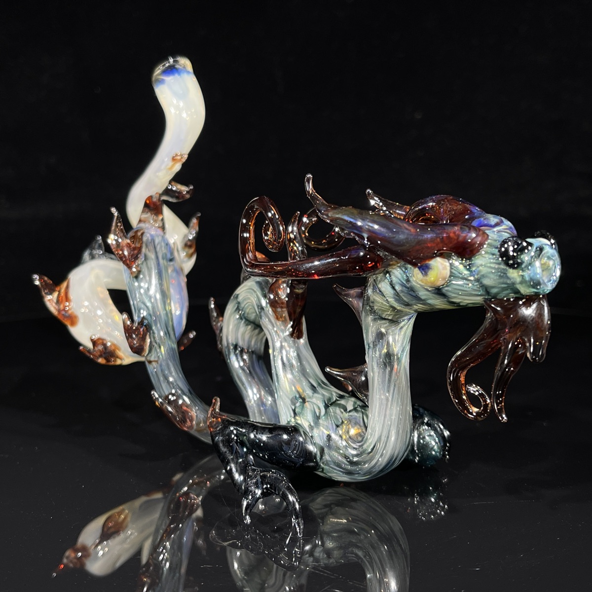The Elder Taoist Dragon Pipe would make an excellent addition to any pipe, or glass sculpture collection. It truly is a blend of both art forms!