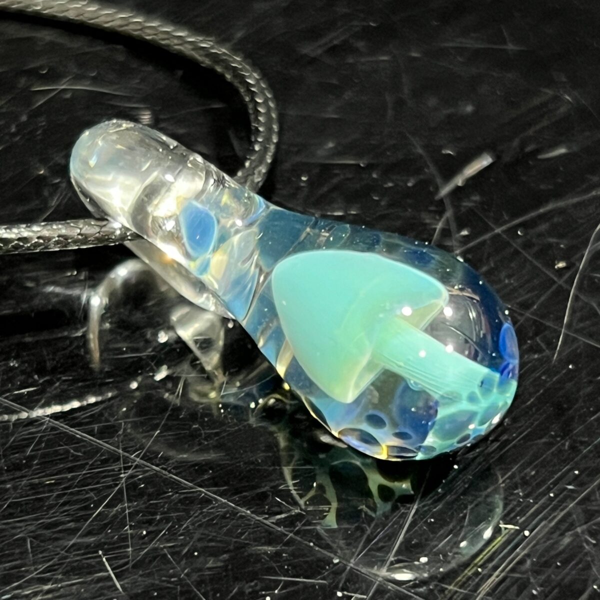 Carry your own sweet blue fungi in this Mushroom Drop Pendant. It features a teardrop-shaped marble that holds a cute mushroom against a fun background. 🌈🍄 When you wear this pendant, it’s like carrying a piece of the forest with you wherever you go. It’s a symbol of your love for nature and the cosmic wonders of the universe.