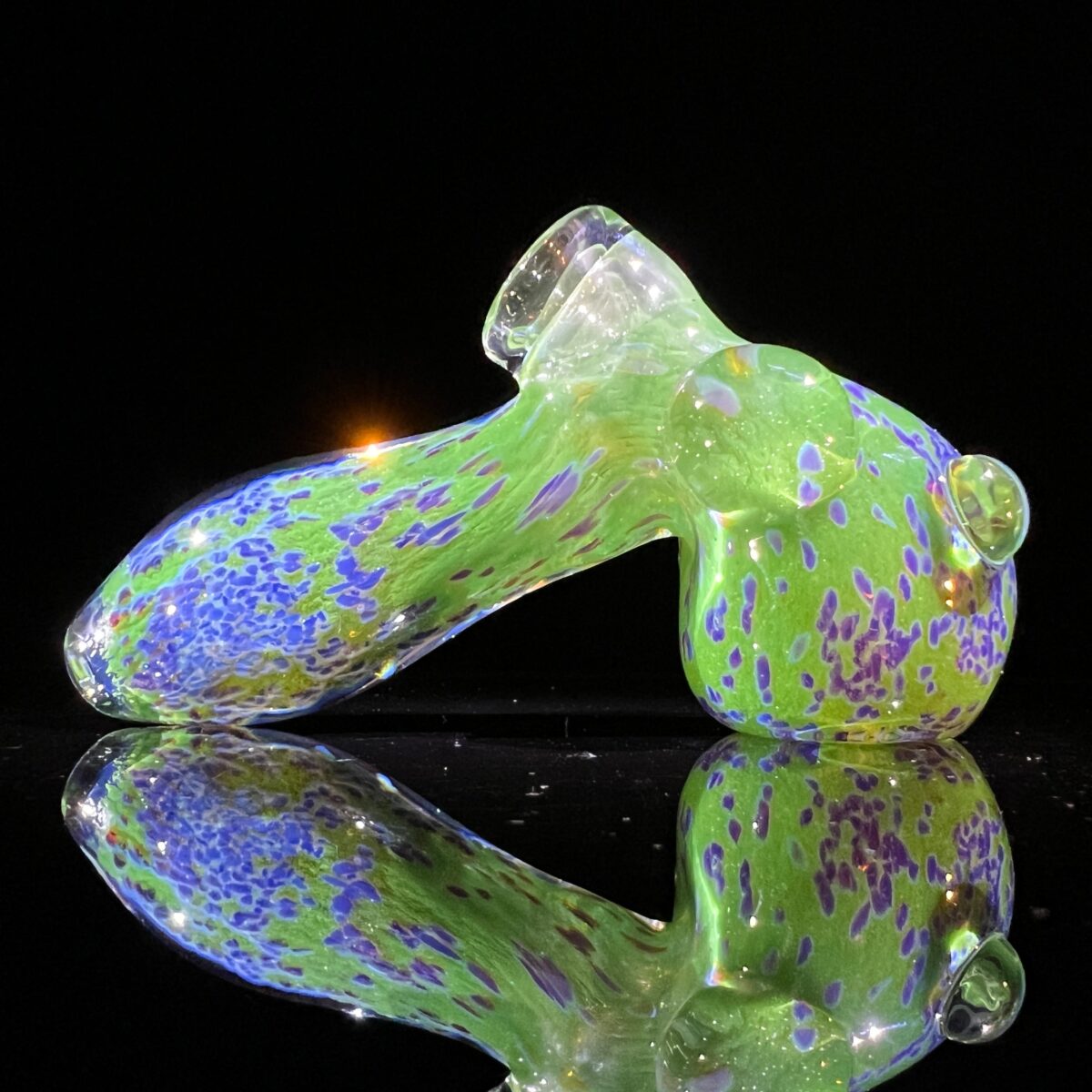 I made these after hanging out in the garden. My favorite strains are ones that are super smelly and purple! I love the purple and green, and this hammer is super thick with the colorful fuzzy clouds. The purple is gonna color-change sick, and the green has crazy sparkles that will pop. This one has two magnifying marbles on the can for extra visuals!