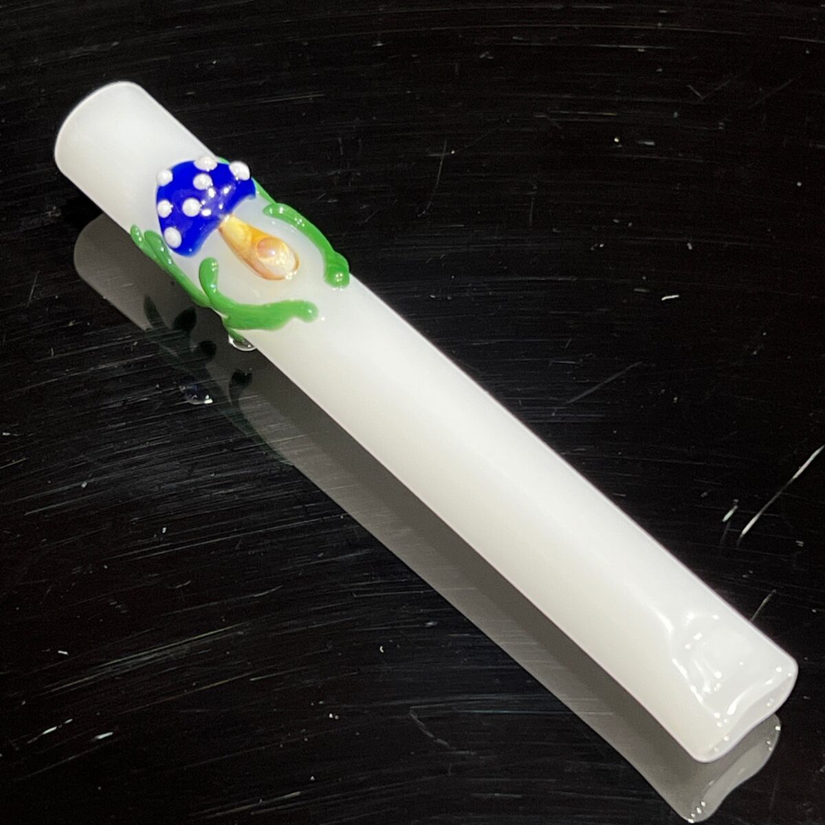 This chillum has some pretty dope featurese like two tiny marbles on the belly which are great for preventing your pipe from rolling away. The super sweet flat mouthpiece lands so comfortably on the lips you won’t want to use anything else.