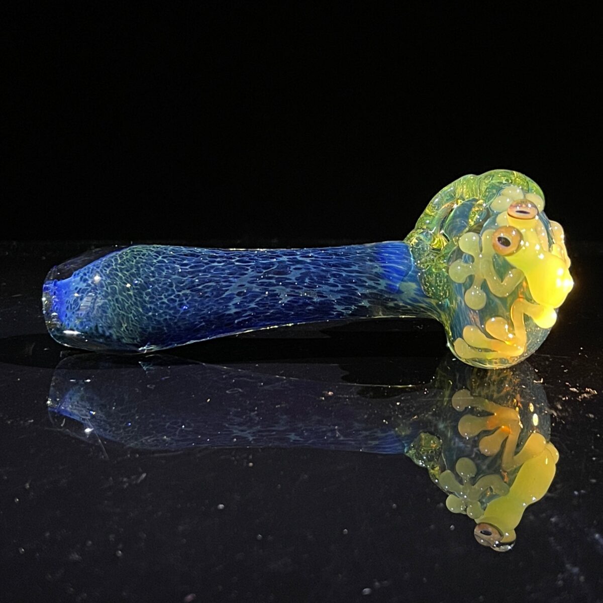 This Slime Mushroom Frog Spoon is so very extra with a classic Beezy style frog relaxing on the bowl! She really rocks the frogs and their big and bright, curious eyes. Such a fun little addition to your spooky collection. Double, double, this will ooze over, but your hands stay clean. Let this pipe be your go to for all things halloween!