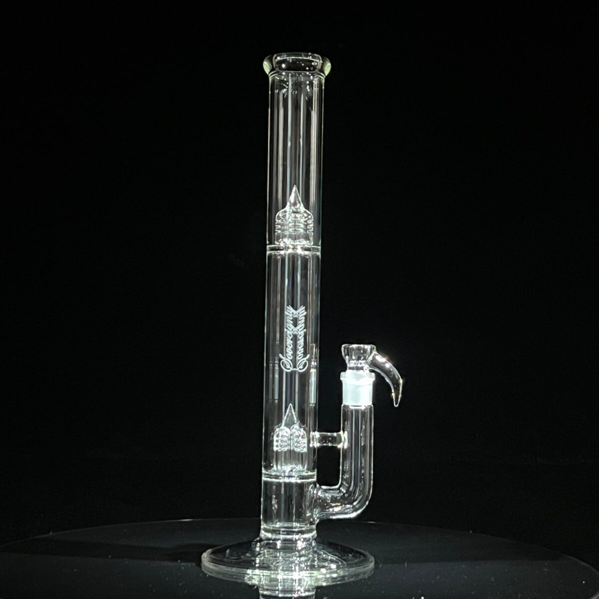 Feast your eyes on the Sovereignty Glass 44×4 Inv4 Clear. Featuring 2 inverted 4 percs get ready for effortless filtration and extra smooth hits. Clear tubing and perfect welds bring this piece together for a clean look, captivating without the need for color.