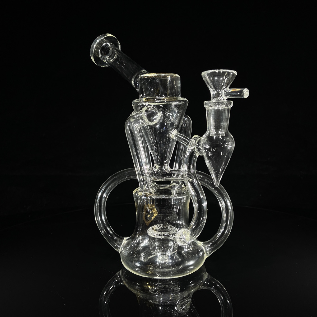 The high flame polished joint, or ‘banger hanger,’ will keep your banger safely raised and away from fingers, or flammable objects. The percolation and recycling action will ensure you get cool even hits with no harshness, while the funnel collector makes sure you get no splashes, even when you rip it hard!