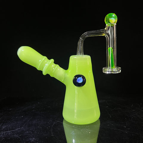 When you are really trying to get baked in the sun you might want to consider whipping out your heady dab rig to send everyone to the moon before you head off on a hike or a bike ride. I love the taste of smoking oil, especially when you have a smooth hitting rig in your collection. If you are new to the dab game you are in luck! We have just the rig you need this summer to keep the fun rolling. Check out Tako’s super unique and exclusive Lime White Satin Rig featuring a matching opal and pill made out of UV ion to go with the control tower and get your dabs vaporizing with maximum precision. This piece is super versitle so you can switch it up and use it for flower too.