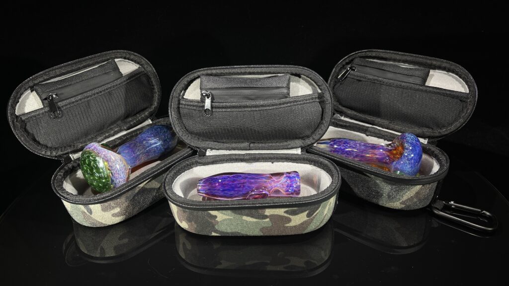 The Headcase by Ryot is our premium handpipe case offering. With just a little more room inside, a few more pockets and features, and a tough outer shell, this case is sure to keep your most prized glass pipes safe and sound! To qualify for this one, you must purchase an in-stock Tako Original Pipe. Tako Original Pipes are made by Tako himself, and are often based on his iconic Purple Nebula colorway, but feature more experimental forms, color combinations, and embellishments. These pieces often have extra marbles, opals, UV reactive highlights, and more!